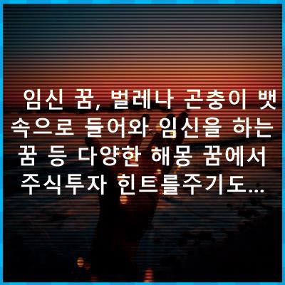 정리드린 내용은 임신 꿈, 벌레나 곤충이 뱃속으로 들어와 임신을 하는 꿈 등 다양한 해몽 꿈에서 주식투자 힌트를주기도... 입니다. 위 내용들이 꿈해몽 찾으셨던분께 좋은 내용이 되었길바랍니다.
